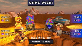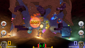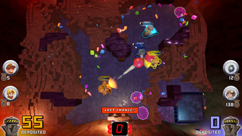 The Quarry's treasure is up for grabs in this competitive co-op, physics-based party game! Face off in teams of 2, as you are dropped into an ever-changing, unstable quarry. Compete to collect and deposit the most gems.