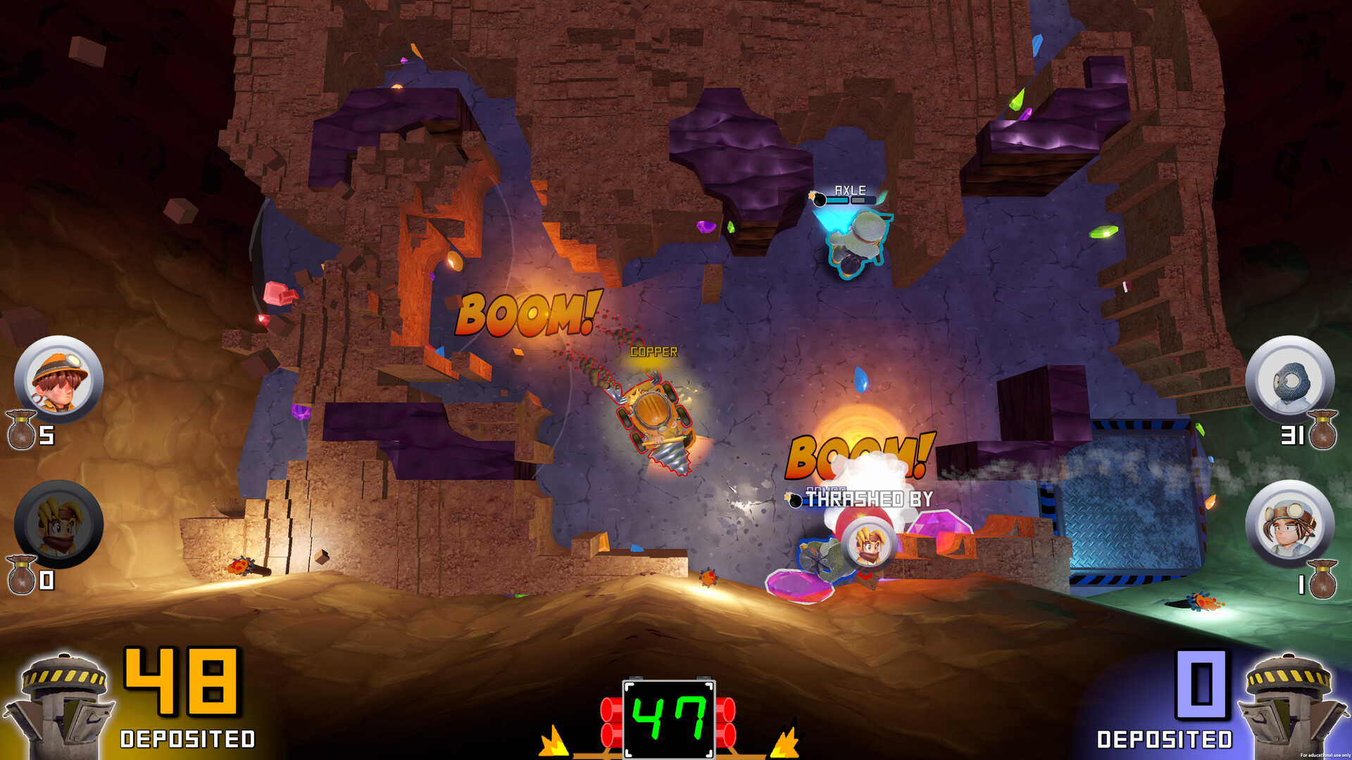 Extreme Excavation Tactics: When kicks and bombs aren’t enough, it’s time to bring in something more extreme. Crack open a mystery crate to gain a powerful tool. Chase down your opponents in the turbo fast Drill-Kart or dive deep underground, surprising them from below with the Jack-Hammer.